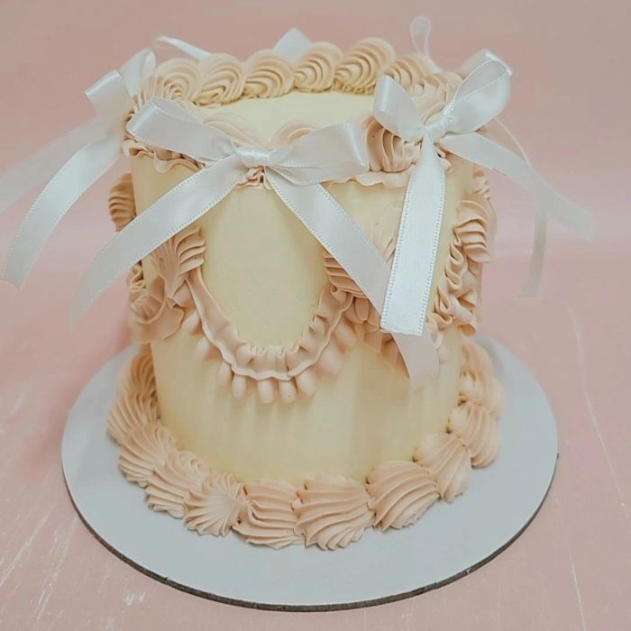 Tall & Tiny is the cutest little cake to celebrate with 2-6 people. A classic vintage style design finished with beautiful little bows.